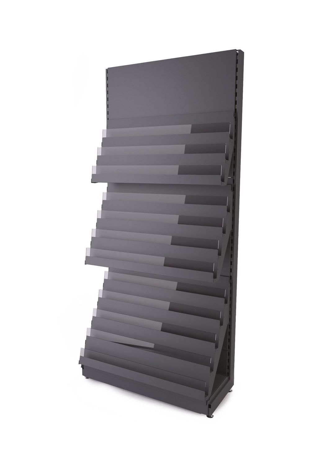 Zarówno w niewielkich sklepach, jak i w supermarketach oraz innych dużych sklepach czy obiektach handlowych, niezbędne są profesjonalne rozwiązania do przechowywania towaru. Prezentujemy regał sklepowy, który służy do przechowywania prasy/gazet. Regał na gazety jest wykonany w konstrukcji metalowej. Został on podzielony na 3 części - łącznie posiada 12 poziomów ekspozycyjnych.